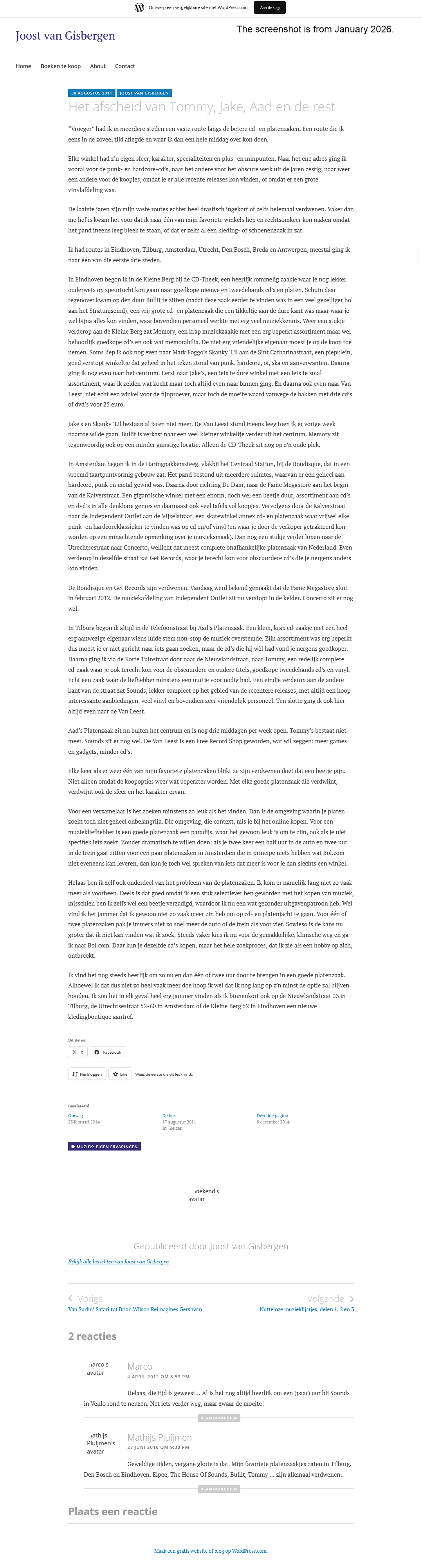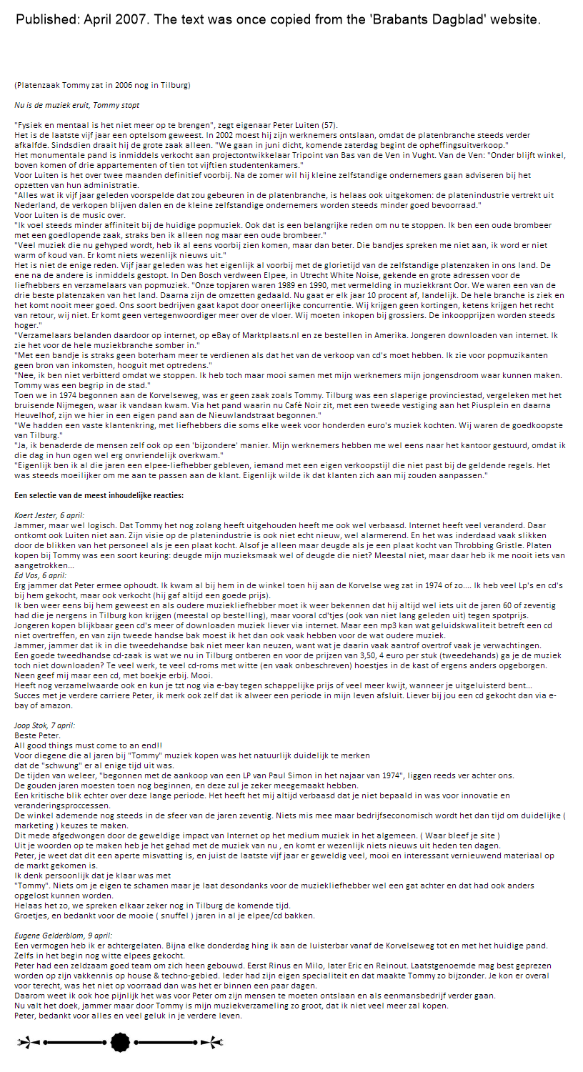 Pic 7: An article about record store 'Tommy' in Tilburg closing down. It wasn't a personal favorite, but the story is typical of the era from around 2007 onwards.