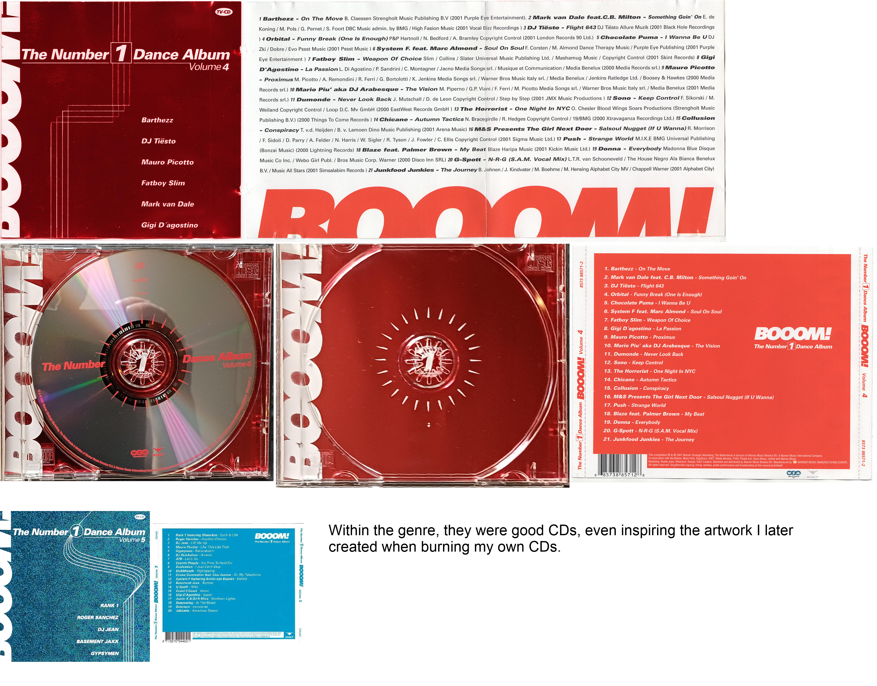 A continuation of the previous lines. --> Despite playing a lot more music predating the late 80s, this was also the era of collecting ultra cheap second hand CDs of the late 80s and 90s - in the past often borrowed from the library. The entire Turn Up The Bass series, House Party 1 to 7 and many others.