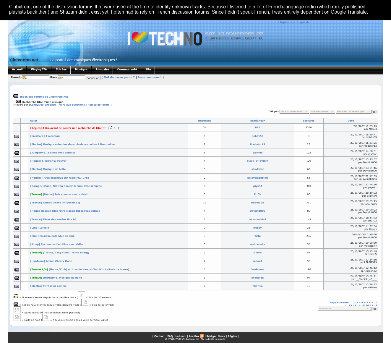 ⟶ Pic: Clubxtrem, one of the French discussion boards used to identify tracks.