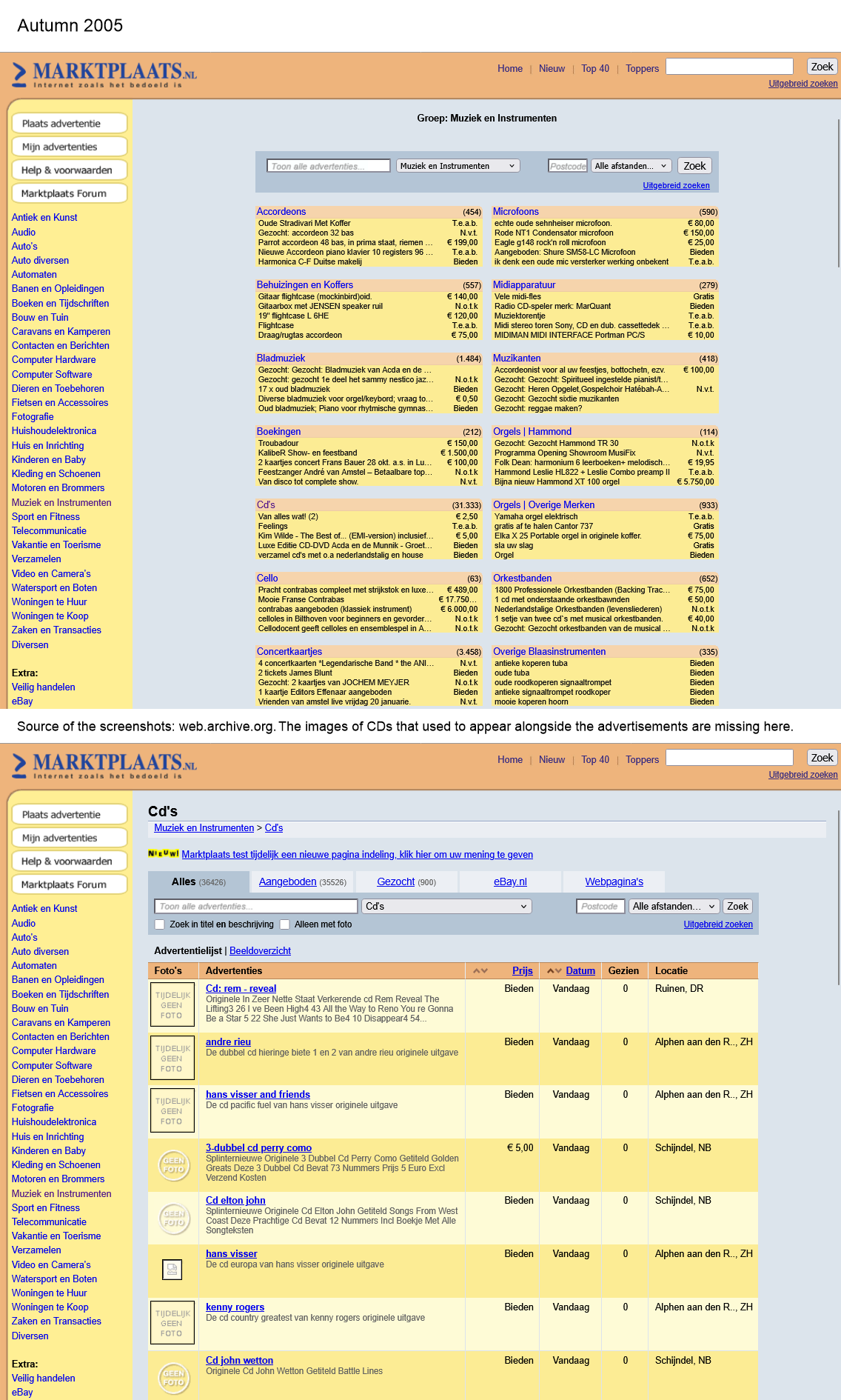 ✱ To collect those second-hand CDs, I visited a lot of shops: sometimes online ('Marktplaats'), but most were brick-and-mortar stores. Unfortunately some would soon shut their doors. I also visited flea markets.