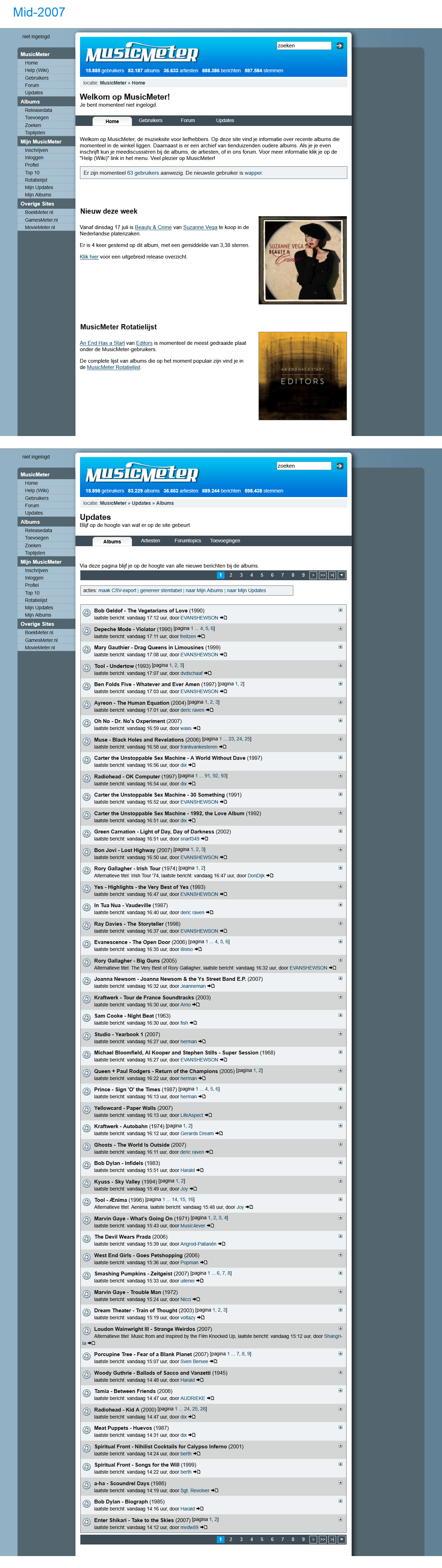 Pic 2: Screenshots of Musicmeter, the Dutch version of 'Rate Your Music'.