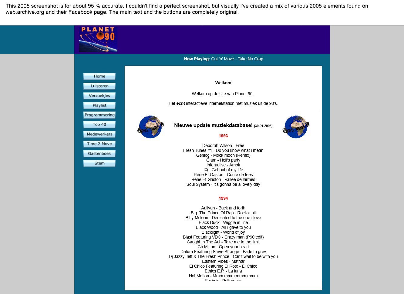 Pic 8: Planet 90 - back then a fun, quirky station. When it launched in early 2005, its database contained the entire Dutch Top 40 of the 1990s, and you could request any track - no matter how obscure or extreme. People definitely took advantage of that. The station still exists today, but the more extreme tracks have been removed and it now focuses mainly on dance music.