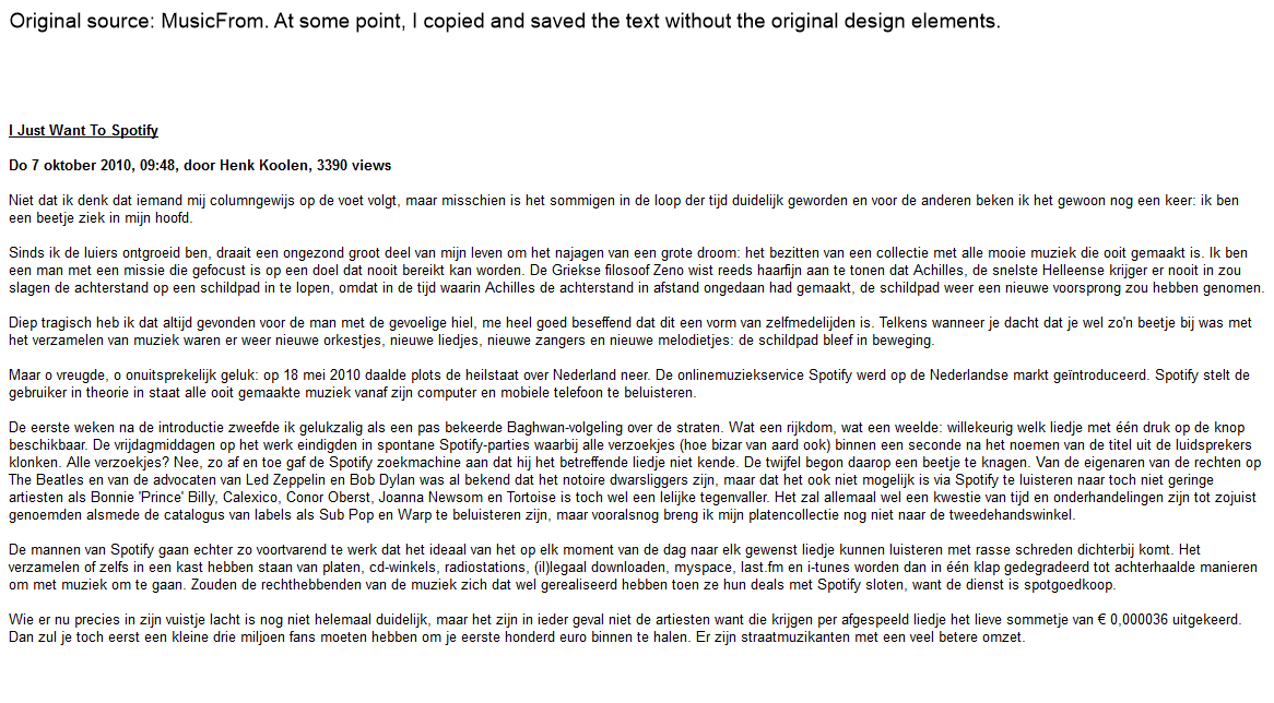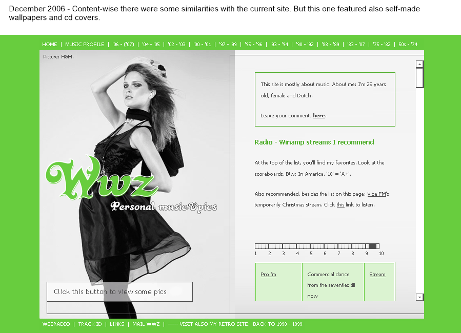 I spent time on discussion boards and created personal home pages. They focused on music. And I wrote a weekly music review for Profm.nl, one of the internet radio stations I listened to regularly. Compared to the era before it all felt more low-key though; My online presence went from rather high-profile to fairly low-profile. Around 2003 I may have taken it a bit too far.